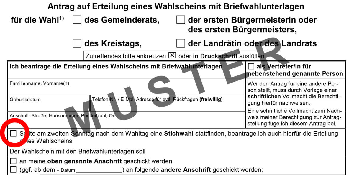 Wichtiger Hinweis zur Briefwahl bei einer möglichen Stichwahl